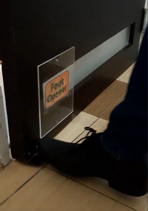 – No-contact facilities from lobby doors to toilet fixtures thru installing foot door opener and foot-controlled dispenser.