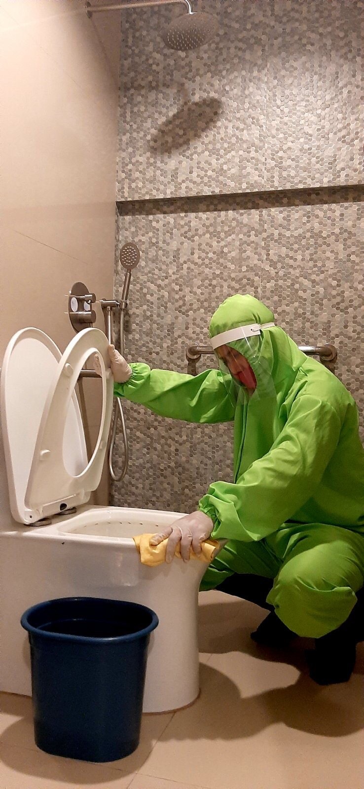 – Use of UVC disinfection light array cart in cleaning and disinfection of rooms and bathrooms.