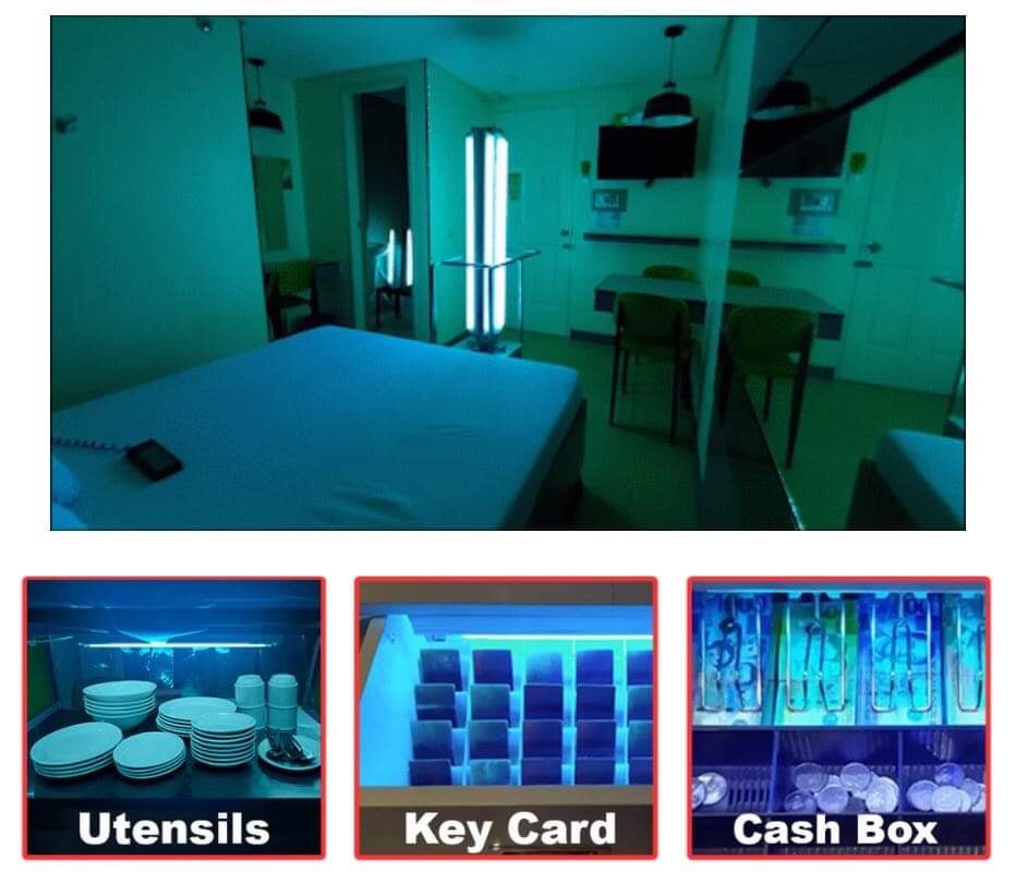 Sogo was the first hotel, as early as March 2020, to use UVC (254nm) to fight Covid-19. Taking the cue from hospitals abroad, remote-controlled carts have been deployed for room disinfection. Compartments for utensils, key cards and cash were also fitted with UVC LEDs but kept away from personnel since 254 nm UVCs, while great for killing viruses may harm the skin and eyes.